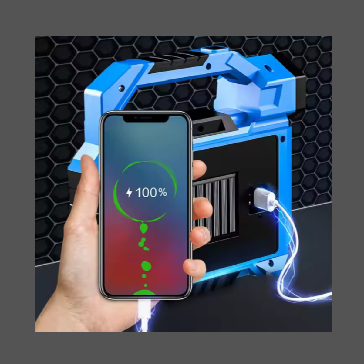 Esta linterna LED recargable y portátil ofrece resistencia al agua, perfecta para uso en exteriores. Cuenta con carga solar y USB para mayor comodidad y cinco modos de iluminación ajustables según necesidad. Su luz potente alcanza más de 200 metros, ideal para actividades como senderismo, camping, caza o pesca nocturna. Fabricada en plástico ABS, combina durabilidad y ligereza para facilitar su transporte.
