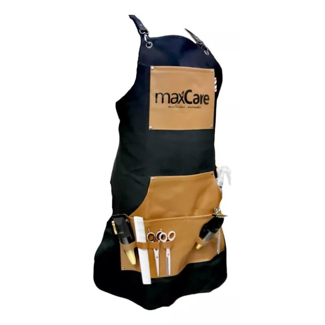 Esta pechera para peluquería y barbería Maxcare está confeccionada en lona 100 % algodón y cuero sintético, garantizando durabilidad y comodidad. Cuenta con correas ajustables con pasador de barra de barbero fijo para un soporte óptimo en los hombros. Incluye dos bolsillos, trabillas para colgar herramientas y una cadena para el tubo de aceite, facilitando la organización del equipo. De talla única y fácil cuidado, se recomienda lavar a máquina por separado en ciclo frío. Ideal para profesionales que buscan funcionalidad y resistencia en su vestimenta de trabajo.
