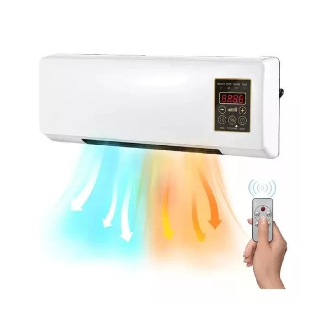 Transforme su espacio con el ventilador y calentador de aire 2 en 1, diseñado para ofrecer climatización eficiente durante todo el año. Con un diseño compacto de 55 x 19 x 12 cm y ligero peso de 1,5 kg, este equipo combina funciones de enfriamiento y calefacción en un solo dispositivo. Su potencia nominal de 1000W y voltaje de 220V aseguran un rendimiento óptimo, mientras el display digital y el control remoto facilitan su uso. Además, cuenta con función de sincronización de hasta 6 horas y regulación de temperatura para mayor comodidad. Fabricado en plástico ABS, garantiza durabilidad y estilo en color blanco.